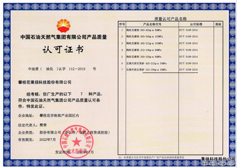 • 中石油質(zhì)量認可證